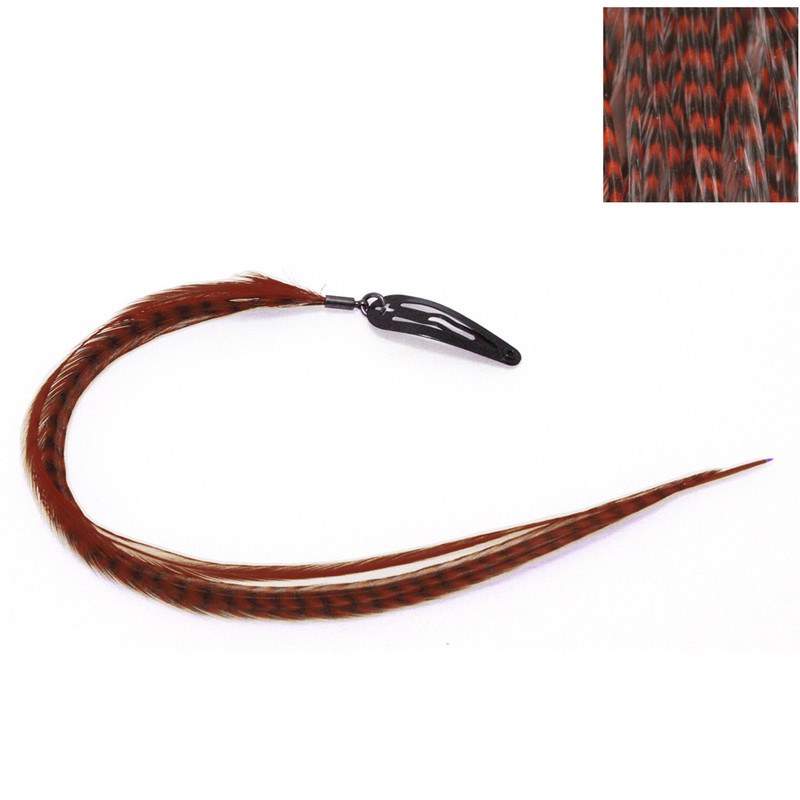 Clip-n-Feathers are the hottest new trend in hair! Avoid the salon hassle and cost with our easy to install Clip-n-Feathers that take just seconds to apply. Each reusable 1" snap clip comes with three, 100% natural, organically dyed feathers that measure approximately 5 to 10" in length. Clips contain a unique combination of plain and grizzly feathers. Flat iron and curling iron safe. Why pay more?