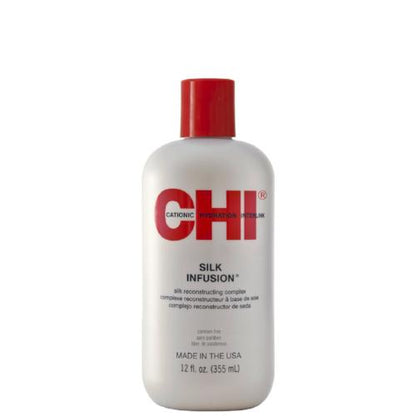 CHI Silk Infusion Silk Reconstructing Complex is a rich leave-in treatment enriched with silk, wheat, and soy proteins that will penetrate and help strengthen the hair, providing incredible softness, manageability and shine without build up.