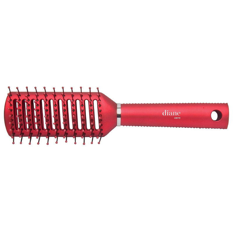 Royal Satin vent brush with red rubberized finish. Nylon pins. 11 row. Specially made with 100% natural boar bristle and varnished dark wood handle. It features a soft bristles on one side and firm bristles on the other, making it top-in-the line in men's brushes. 9 row vent brush with easy grip handle.