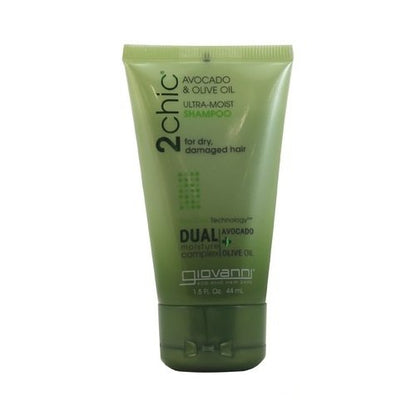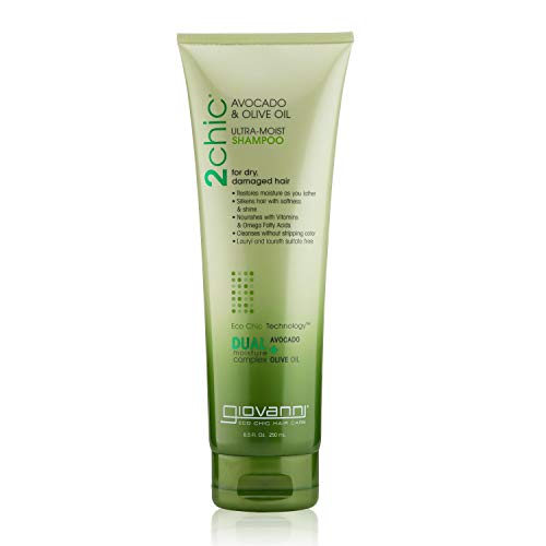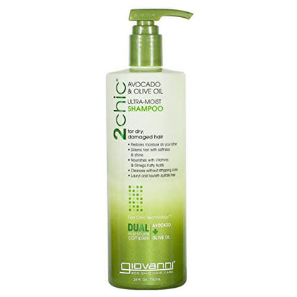 2Chic is to...shine. Conquer dry, damaged hair with Giovanni's 2Chic Avocado & Olive Oil Ultra-Moist Shampoo. Discover a radiant new world of strength and shine with Giovanni's 2Chic Avocado & Olive Oil Ultra-Moist Shampoo. Satisfy your hair's deepest cravings for intense nourishment and nurturing: cleanse and re-energize hair with Giovanni's 2Chic Avocado & Olive Oil Ultra-Moist Shampoo. Giovanni's 2Chic Avocado & Olive Oil Ultra-Moist Shampoo contains a delectable botanical blend of buttery Avocado and golden Olive Oil, formulated in Giovanni's exclusive Dual Moisture Complex to replenish hair that feels dull, lifeless and brittle. Lather in moisture, shine and control as the first step to your glossiest, most glamorous hair. Giovanni's 2Chic Avocado & Olive Oil Ultra-Moist Shampoo will not strip or fade color. Giovanni's 2Chic Avocado & Olive Oil Ultra-Moist Shampoo is ideal for hair that's heat-styled often, and 2chic to be denied.