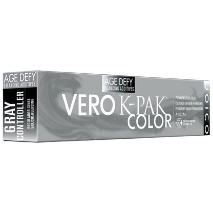 Want to age graylessly? Bring back the glorious look and feel of youth with Vero K-PAK Age Defy, our first haircolor proven to reverse the four key signs of maturing hair. The Age Defy permanent creme palette offers the largest selection of gray coverage shades on the market, plus three anti-aging must-haves in each tube of color.