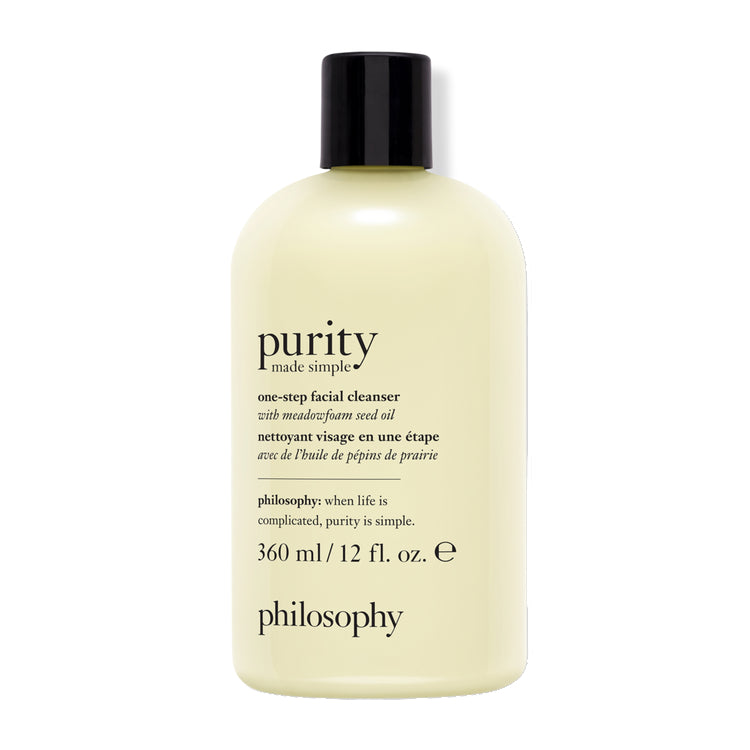 Philosophy's Purity Made Simple One-Step Facial Cleanser with meadowfoam seed oil is an award-winning cleanser that melts away dirt, oil and makeup. It tones and lightly hydrates in one simple step for skin that feels perfectly cleaned and comfortably balanced.