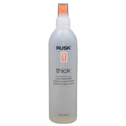 Get incredible body and volume, and add texture from the inside out, with Rusk Thick Body and Texture Amplifier. Transform fine, limp, lazy hair into big, beautiful styles. Thick Body and Texture Amplifier contains Thermplex to boost body and volume from inside out, and wheat protein to add strength and moisture.